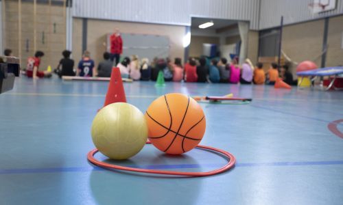 De kinderen in de groepen 3 tot en met 8 maken gebruik van de gymzaal in de sporthal.